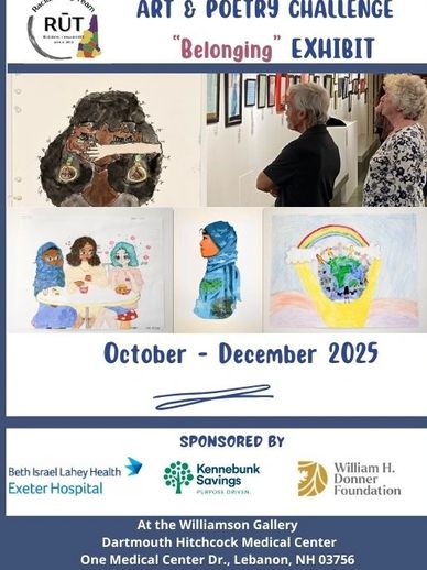 The Dartmouth Health Williamson Gallery will feature the 'Belonging' exhibit, highlighting art and poetry from residents across eight New Hampshire counties. Part of the Racial Unity Team’s annual Art & Poetry Challenge, the exhibit highlights belonging and exclusion, with winning K-12 and adult submissions joining a statewide tour. Sponsored by Kennebunk Savings Bank, NH Charitable Foundation, William H Donner Foundation, and Beth Israel Lahey Exeter Hospital the event also includes a Fall Exhibit Reception and Artwalk for all participating artists.